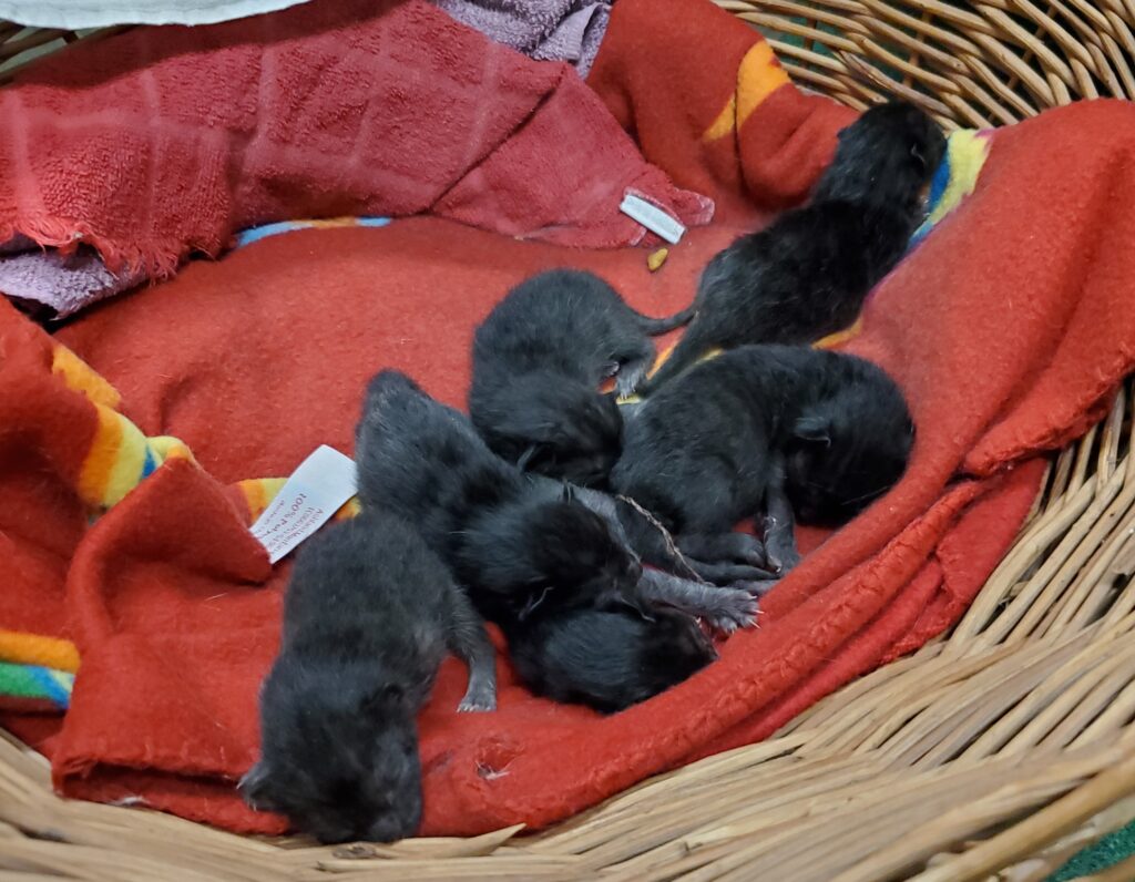 August 3, 2023 is special to me because two years ago on this date my little black cat GG gave birth to six beautiful surprise-kittens. God was good when he sent homeless GG to hang around my front porch and sleep in my nearby crabapple tree and capture my affection with her sweet ways until—of course–after a few days, much to the disgust of Ernest T. Bass, she became a member of the household.