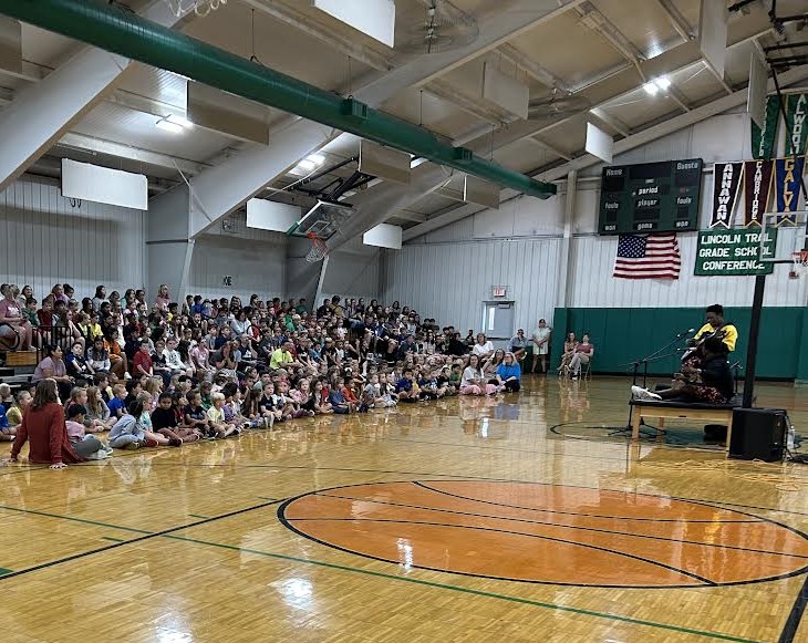Mrs. Hagaman reserved Moss Gym for a morning concert and brought in kindergarten through sixth graders and junior high band and chorus students.