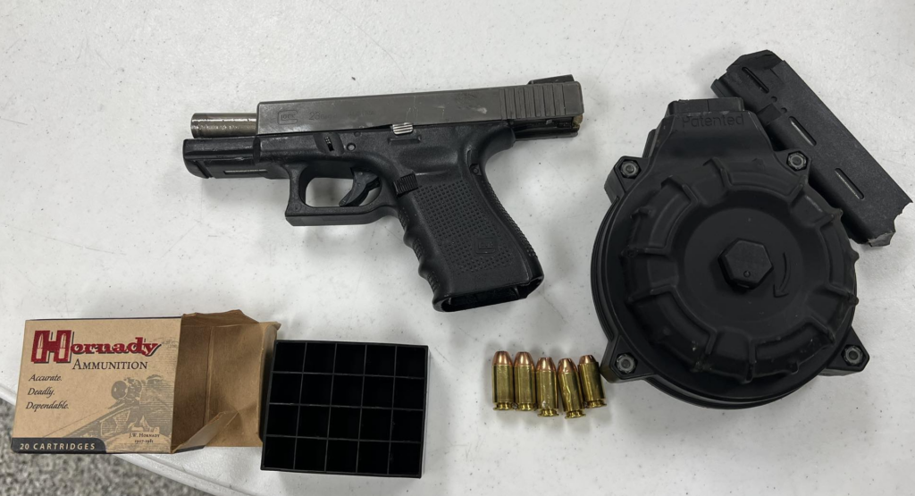 During the pursuit, occupants of the vehicle were observed discarding items from the window. Deputies later recovered a firearm and a firearm magazine in the area where the items were discarded.