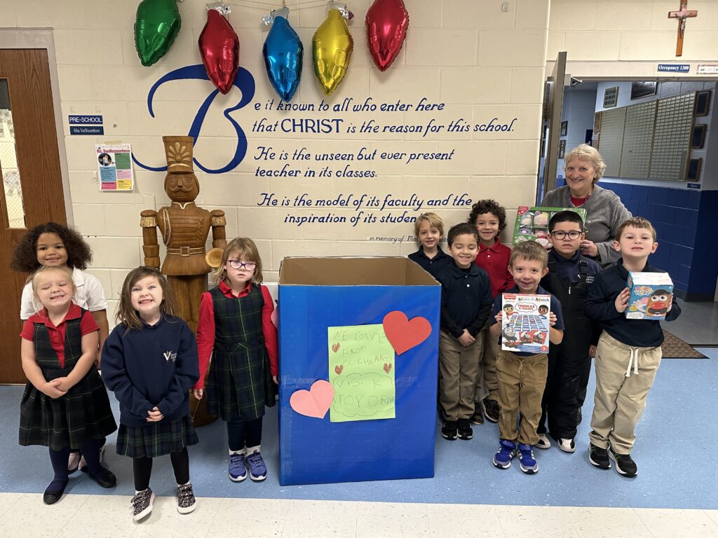The Visitation Kindergarten class is giving from the heart. Each year, the class sponsors a toy drive to benefit the local Patchy’s Red, White & Blue Christmas Toy Drive.