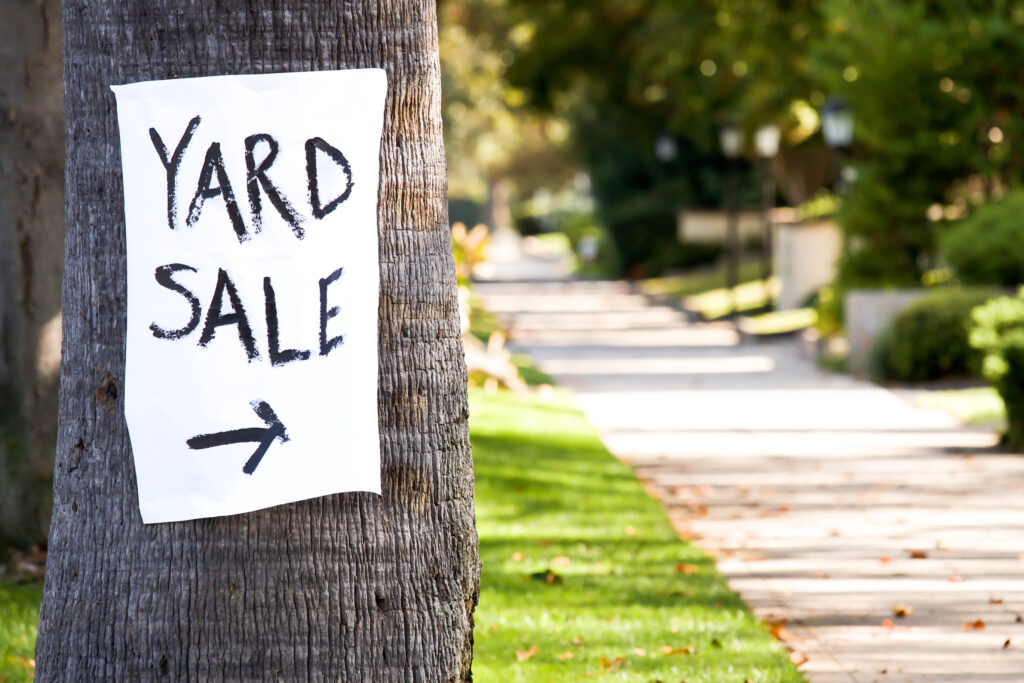 –A yard sign to help advertise their sale