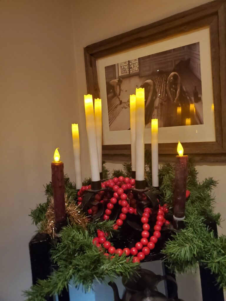 I got an easily remembered gift in 1974, a beautiful wrought iron candelabra. Wayne had just started a new job with Country Companies Insurance and we had three junior high children. We were poor as church mice—and I saw this handsome candelabra in a shop in Cambridge. I HAD to have it. I promised Wayne, who was very generous and thoughtful with gifts, (but not made of money), that if I got it for Christmas I would use it as the Christmas table centerpiece every single year thereafter. I got it. And I’ve used it as the holiday centerpiece every single year since.