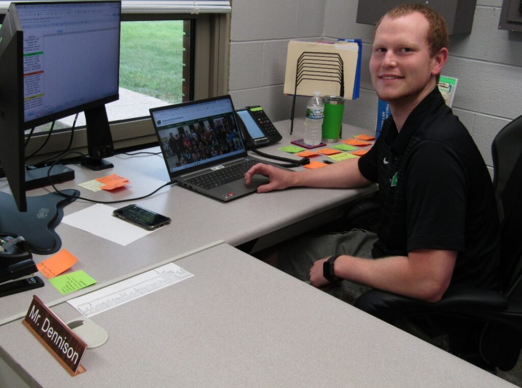 In high school, Dennison was active in athletics, school activities and an honor roll student. An early indication that he was thinking about becoming a teacher was applying for and receiving the Marilyn and Milt Hamilton Memorial Teachers Scholarship at graduation.
