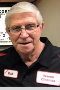 While there he and Katie became interested in the movies. First, Katie was manager of the Wanee Cinemas in 1976 and later that year they also began as managers of the Wanee downtown, the Wanee Drive-in Theater and the Midland Plaza Cinemas. In 1982, he sold the Shell Station, but he stayed as a manager of the theaters. He went to work as a facility manager for Schwan’s Ice Cream in 1982 until the drive-in and Midland were closed in 1984. At that time Bud still worked as facility manager at Schwan’s, Katie moved to Apollo Cinemas in Princeton, IL and Bud managed the Wanee in Kewanee.