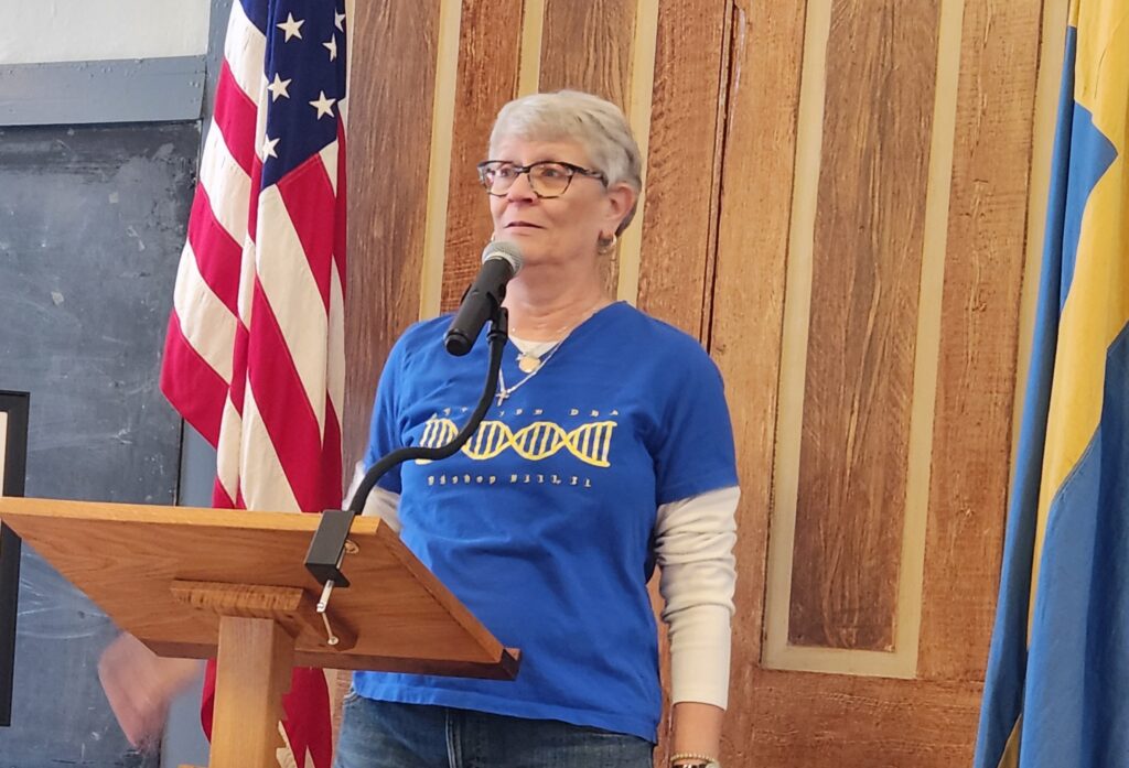 “When the Swedes first came to Bishop Hill, there was a ravine in the middle of the park. They dug out sections of that ravine and covered the fronts with pieces of wood,” said Joella Krause, Bishop Hill descendant and president of the Old Settler’s Association. “This whole reconstruction is personal. This park is where our forebears spent their first winter. Babies were born, people died and those that survived went on to build a community in this new world.”