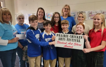 In 2017, the Prairie Chicken Arts Festival Committee added something new to the mix. The committee invited area schools to submit artwork from students that would be displayed in the windows of downtown shops during the festival that year.