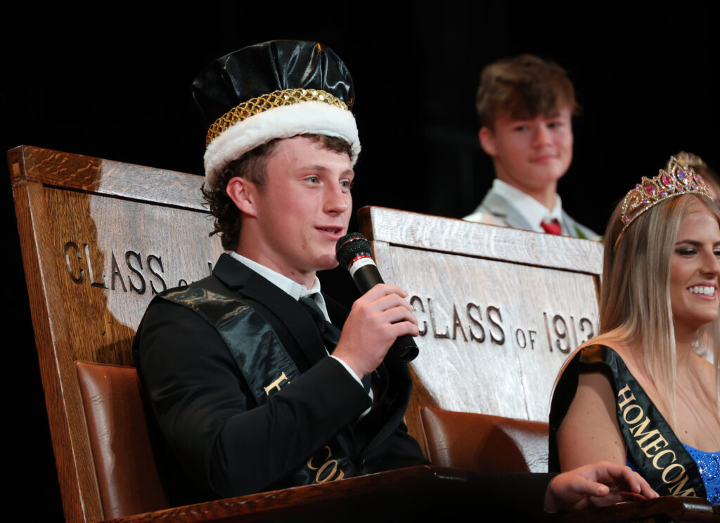 Homecoming King Benjamin Taylor addresses the students. [Photo by Itzel Mosso Ramos of The Kewanee Voice Student Journalism Program]