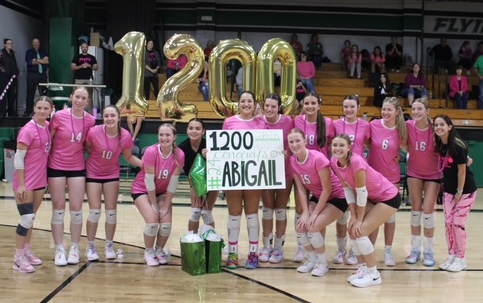 Senior Abigail Cabada was recognized for completing 1,200 career assists, and Coach Tonya Vincent was recognized for obtaining 500 career wins–big accomplishments for the team.