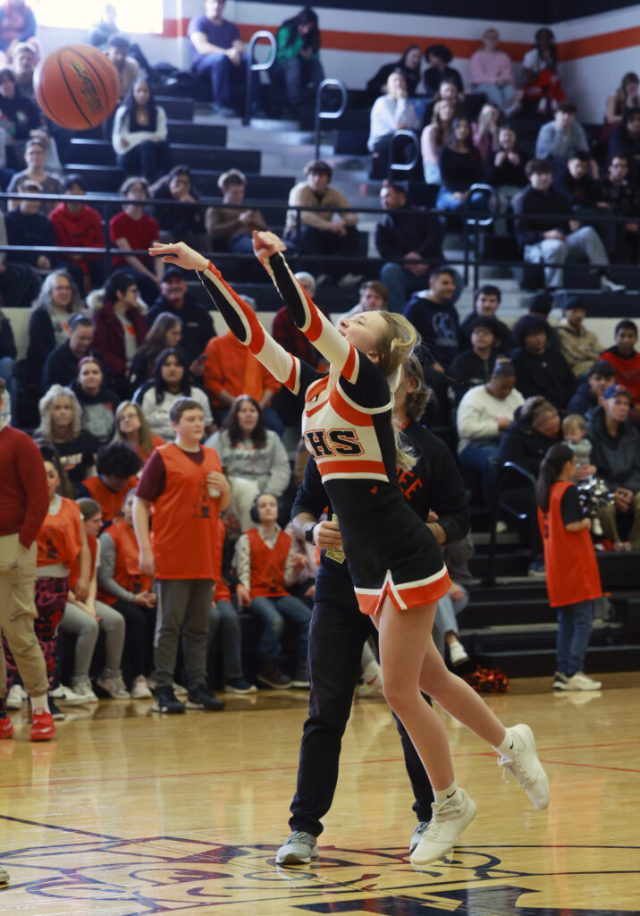 After performances from the dance and cheer teams, students attempted half-court shots for $1. If they made their shot, they received a free Pizza Hut pizza.