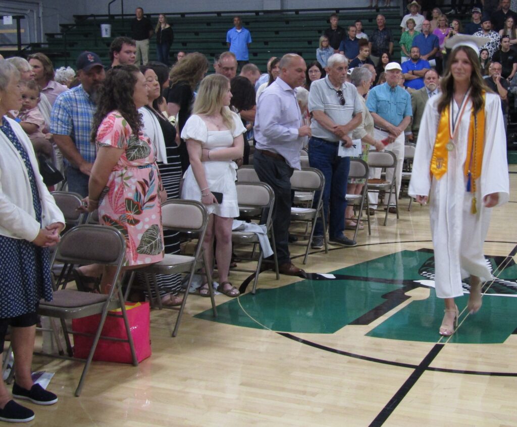 The guest speaker was retired Superintendent Shane Kazubowski who recalled “firsts” he had experience with the class during his years at Wethersfield, including their pre-kindergarten “graduation,” which, he observed, was the first time they had worn green and white caps and gowns.