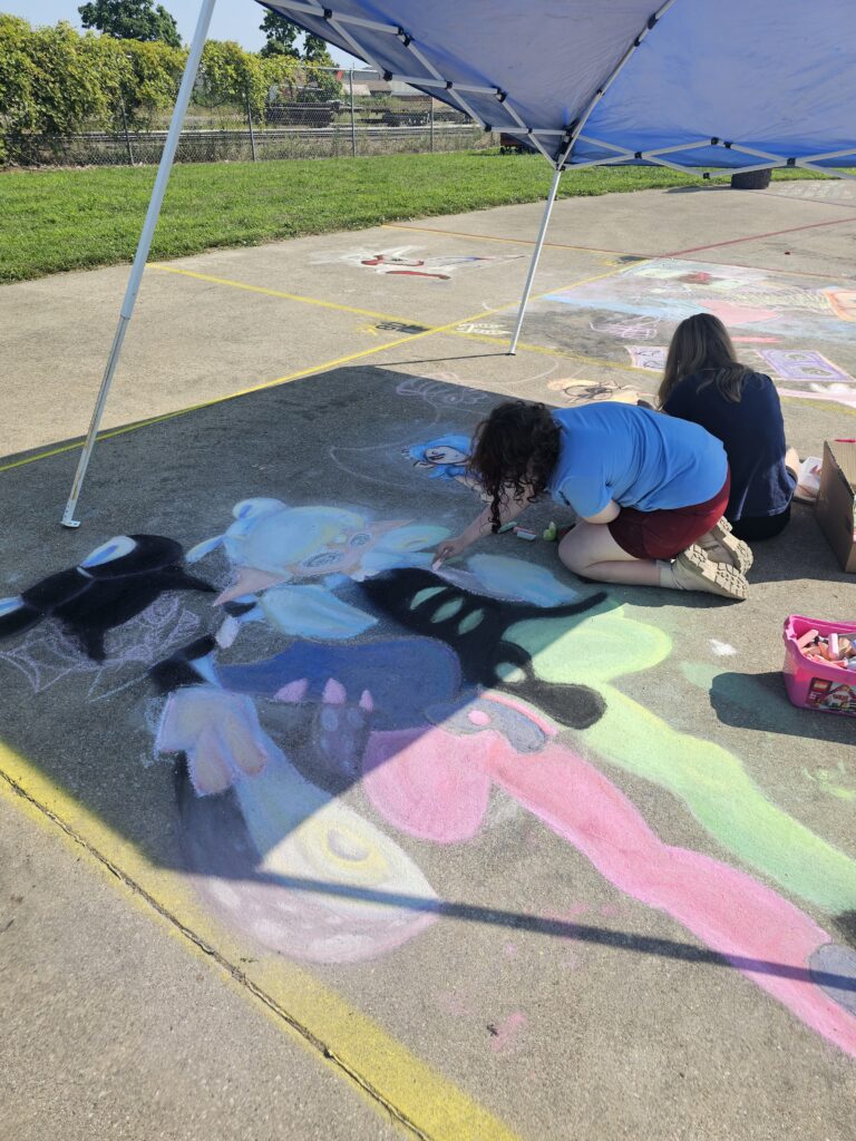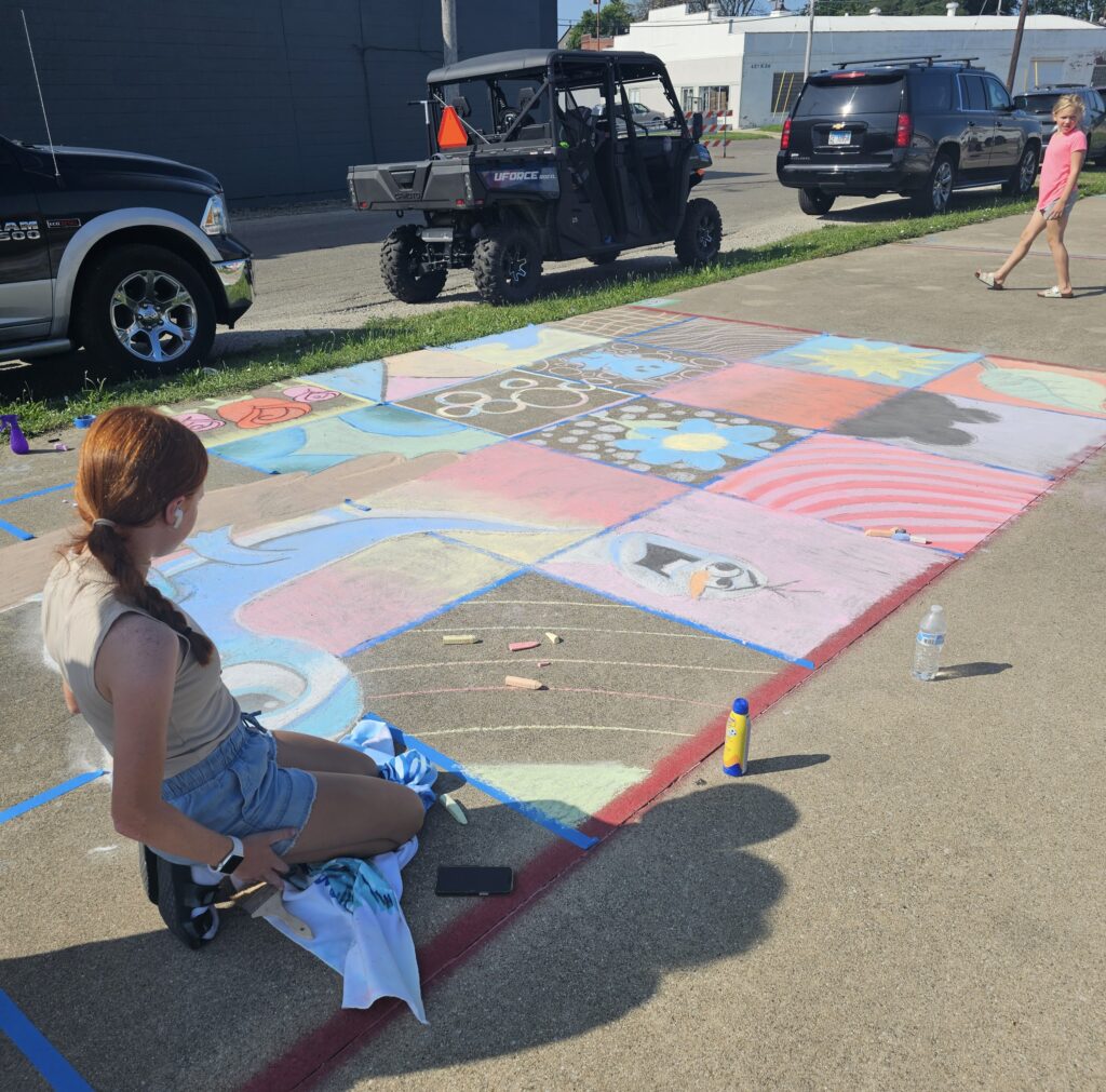 Artists created their chalk art designs over the weekend at the Prairie Chicken Arts Festival. [Photo by Mike Berry]