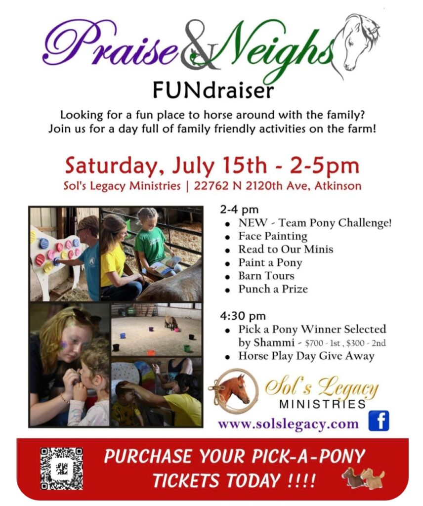 The Praise & Neighs fundraiser will be held at 22762 N. 2120 Ave. in Atkinson. For more information, visit www.solslegacy.com, or find them on Facebook.