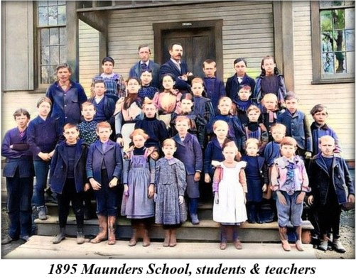 In 1864, a duplicate of the Northville school was built in the northeast corner of Section 28 on what was known as North East Street Road, one mile north of the corner of Lake and East streets. It was built by H. Searle but at an increased cost of $735. The school became known as Northeast or Maunders School. (It was a rural district school until 1948, when it became a community unit district school.)