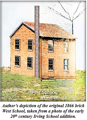 The schoolhouse was used for civic and other activities. For instance, when the Congregational Church congregation moved from Wethersfield to Kewanee in 1856, it held its Sunday school and Sabbath services in the West School before moving to the larger Cutter’s Hall on the northeast corner of Tremont and Third streets.