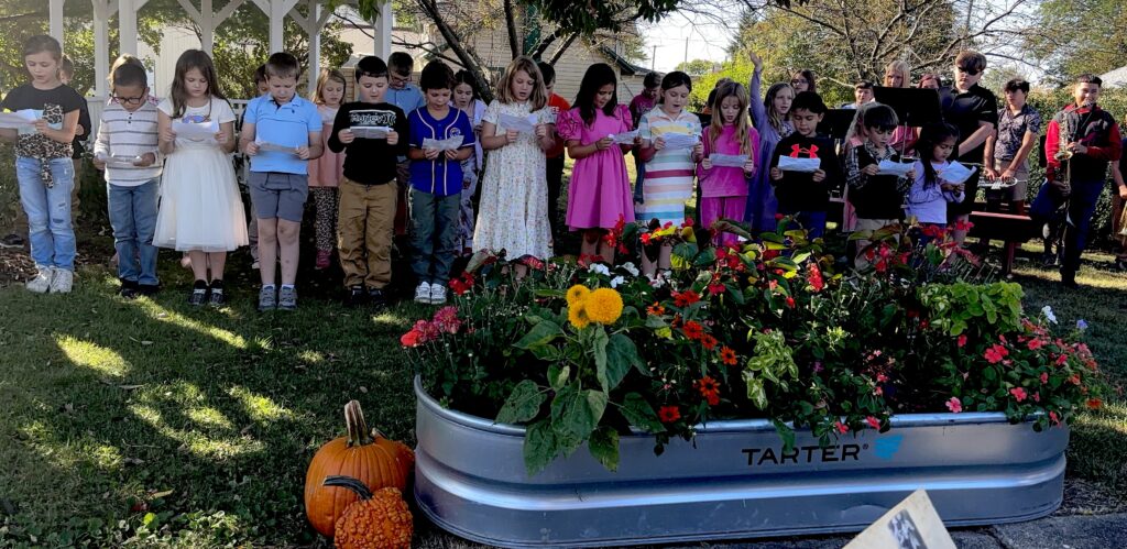 A group of pupils at Neponset Elementary School recited “Pods” during the ceremony, and the Neponset Junior High band played a selection.
