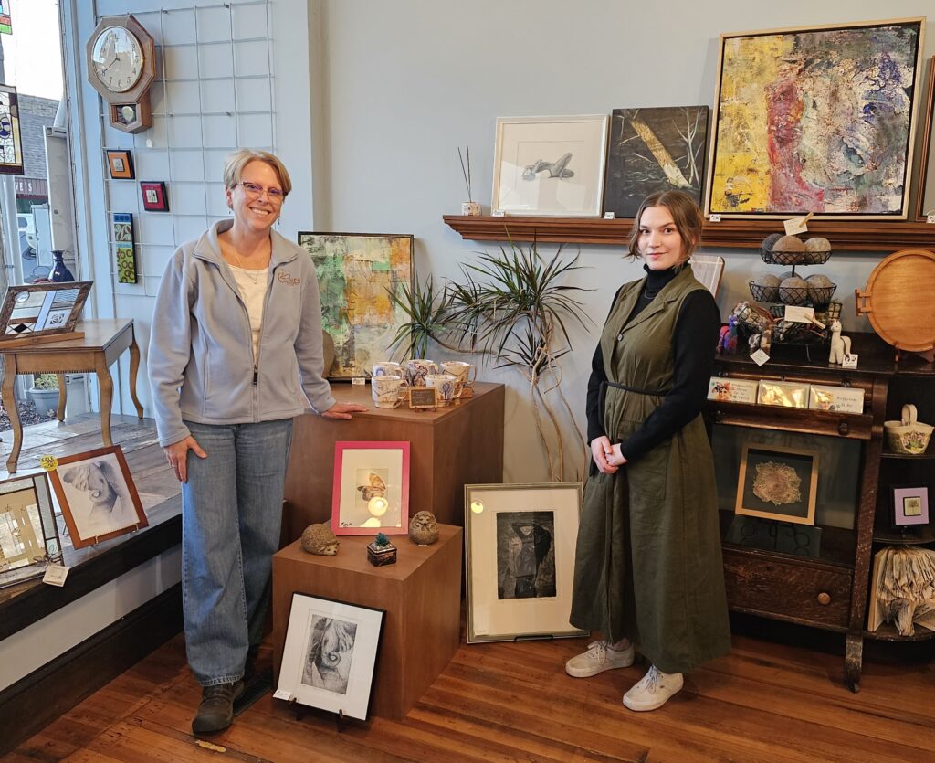 When she first decided to reopen her gallery, she knew she needed help and someone who could assist her in running it with the spirit that she and her mom had tried to instill. With that in mind, Wilke took a chance and hung a sign on her door asking if anyone was interested in becoming a business partner or a renter of the space. Then she ran across the street to look at furniture at New View. She was only gone for a few minutes when a woman came strolling by the shop, saw the sign and snapped a photo.