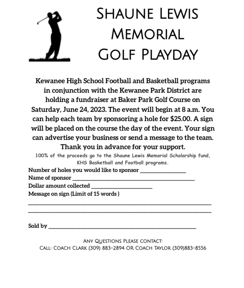 The Kewanee High School football and basketball programs, in conjunction with the Kewanee Park District, are holding a fundraiser at Baker Park Golf Course on Saturday, June 24.