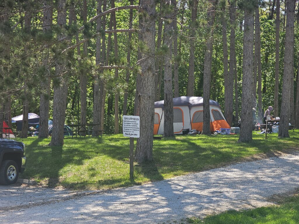 Sixty sites, 30 with 30 amp service, 30 with 20 amp service, Tent camping in north field