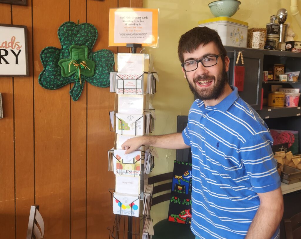 News about her venture quickly spread. Young adults with special needs from nine surrounding counties including the Quad Cities have visited the bakery to share special treats and to hear Frankie share his experiences. The Kewanee High School Life Skills class visits frequently and provides a large supply of handmade greeting cards for sale.