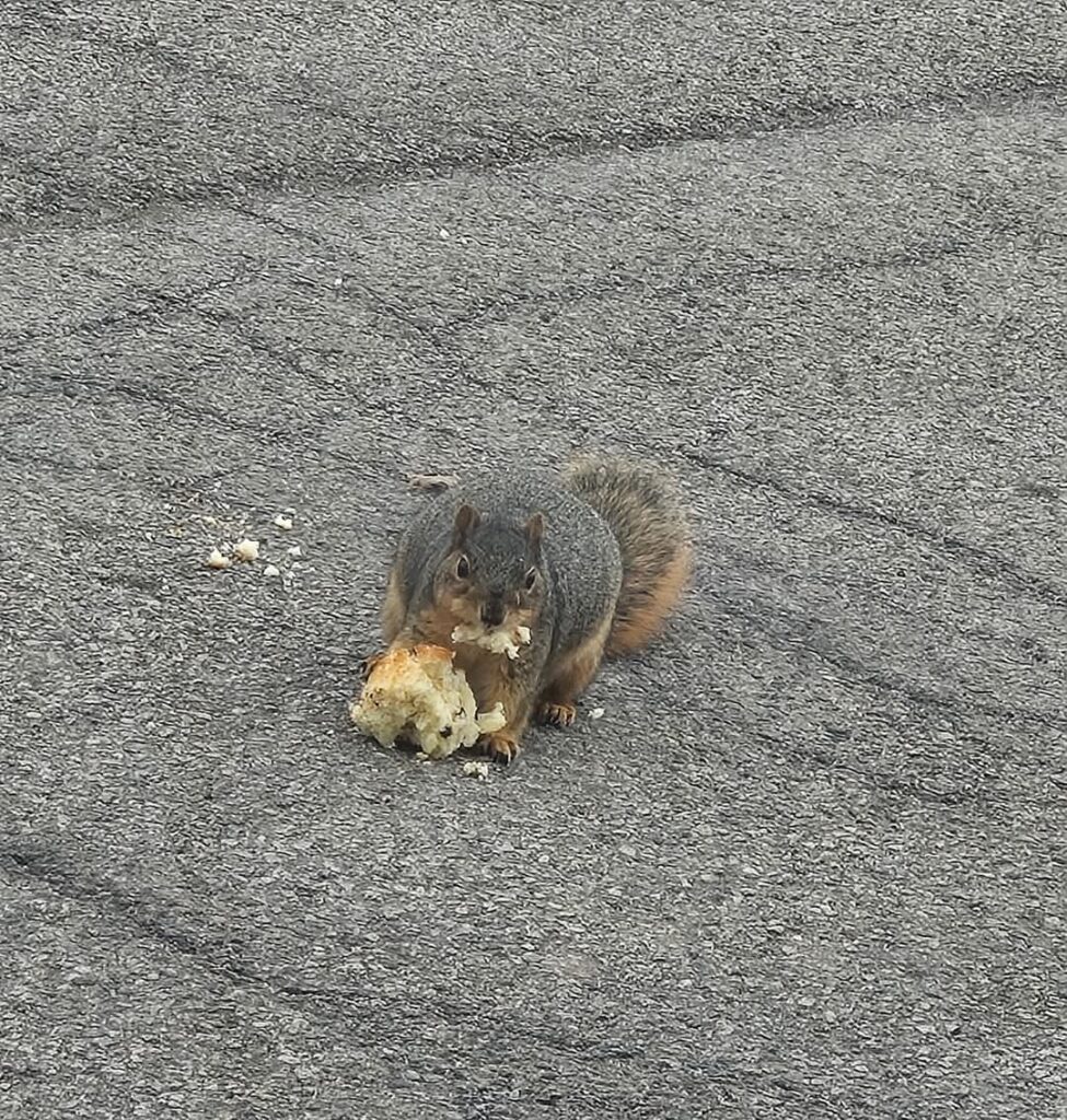 A Kewanee man chronicled the epic struggle of a rather rotund squirrel and a muffin while eating his lunch on Tuesday.