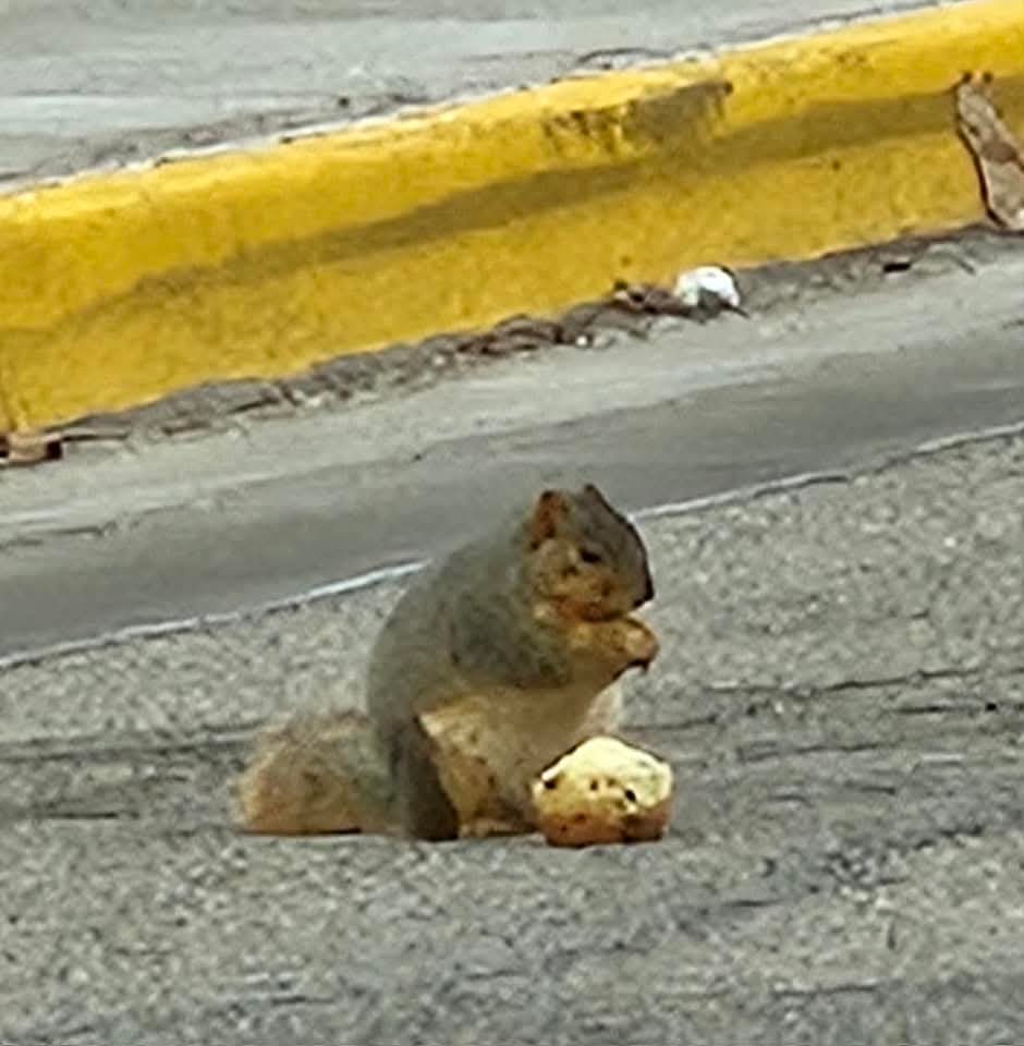 Hernandez said the plump squirrel is no doubt bulking up for winter and the muffin probably helped. And students do drop a lot of food on the ground, he said, making it an ideal location for hungry squirrels to forage for their next meal.