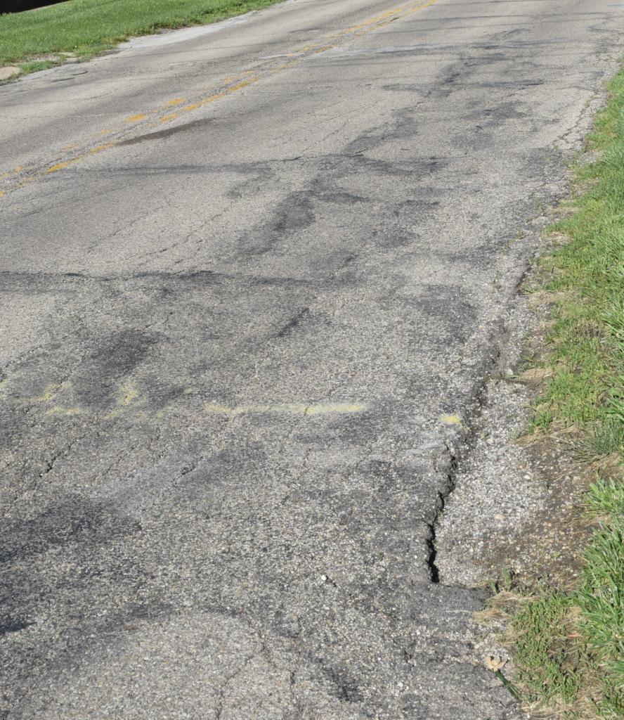 The surface of West Sixth Street has been patched frequently, and state transportation officials have plans to resurface the street. [Photo by Mike Berry]