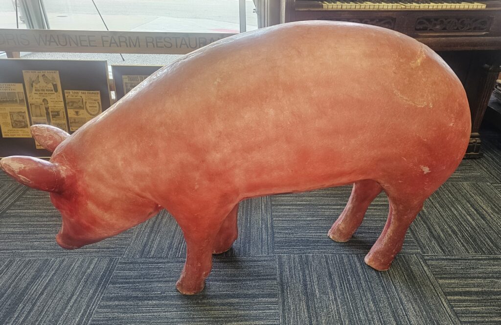 After that the pig, which remains the property of the KCOC, went into storage before being loaned out to Cookie’s Gaming Parlor for a brief stint. It now has a home in the window of the Kewanee Historical Museum, where it remains a part of Kewanee lore.