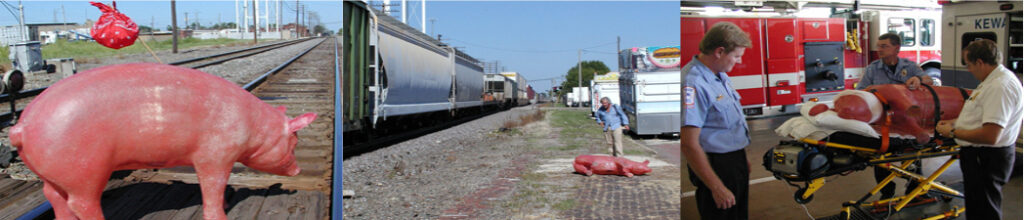 The next summer, the pig tried to hitch a ride on one of the passing trains, perhaps in an attempt to leave the shame behind. Knapsack in hoof, the pig tragically lost an ear after the train’s currents blew it, “plastic oinker over hooves,” down the tracks. The ear has since been repaired.