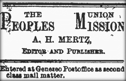 A. H. Mertz was the editor and publisher of The Peoples Union Mission, a small Geneseo newspaper of sorts. He was about 40 years-old, with a scraggly beard, sallow complexion, and a slight build. Mertz was a fervent supporter of the A. P. A. He had literally bounced around Iowa and Illinois – that is, he regularly offended folks with his vitriolic writings and eventually was bounced out of positions in Burlington, Iowa, and Rock Island before landing in Geneseo. Mertz did not change his stripes upon his arrival in Henry County.