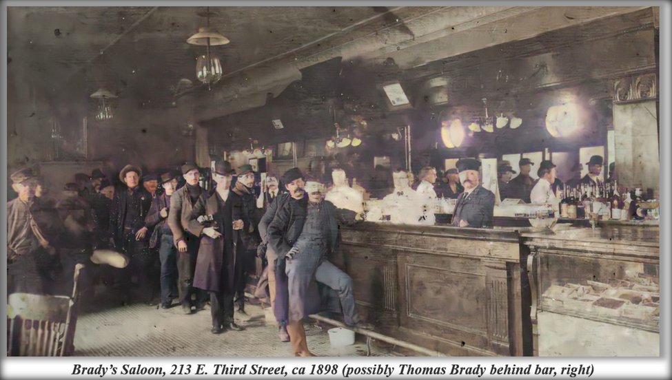 By 1892, Brady operated another grand saloon at 213 W. Third St., today’s Cerno’s. Brady’s son, John, was a bartender in the new saloon. Other of Brady’s sons were working in other aspects of the family’s burgeoning businesses.