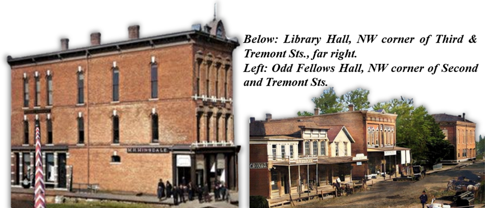By 1880, the library outgrew its allotted space as city government grew, so the directors relocated it to the second floor of the Odd Fellows Building on the northwest corner of First and Tremont Streets.