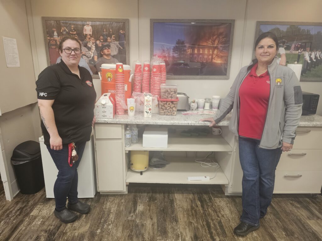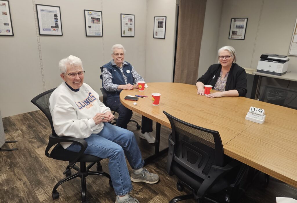 Visitors enjoyed coffee and donuts donated by Scooter’s Coffee in Kewanee while chatting with members of the nonprofit news outlet’s board of directors: T.D. Welch, Paula Kapacinskas, Jean Berlinski and Jesse Humphrey. Publisher Mike Berry, Managing Editor Susan DeVilder, Office Manager Janie Metscaviz and Editorial Assistant Diane Mikenas were also on hand to greet guests.