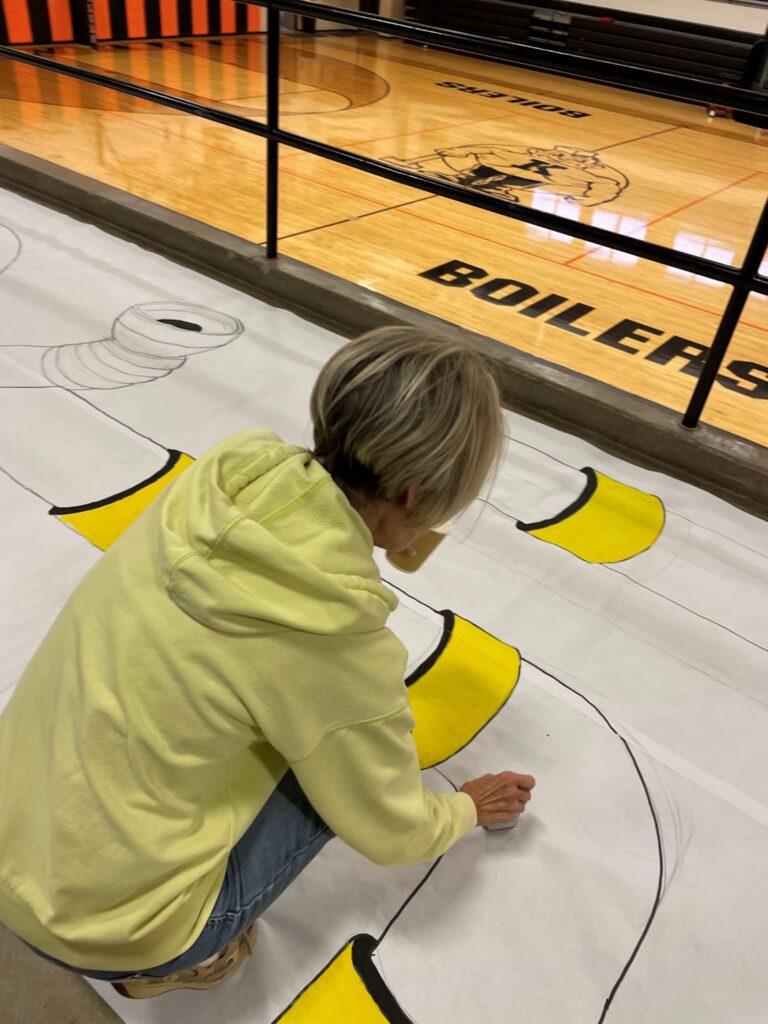 During a production, the actors tell 50% of the story, and the other half goes to the set design and crew working behind the scenes to bring the play to life. While transforming a set into a new world, set design allows people to express themselves and get lost in their work. That was certainly the case for Susan Blake, the veteran designer for Heather Olalde’s Kewanee High School musical productions.