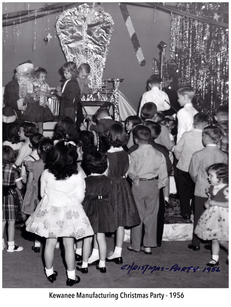The highlight of the season, however, was Santa’s arrival, always a major event that kicked off the Christmas shopping season in Kewanee. Children and their families gathered in a parking lot downtown, at the train station, or at Midland Plaza. Saving this sleigh and reindeer for Christmas Eve, Santa arrived in various modes of transportation from a helicopter to a fire truck and a horse-drawn (borrowed) sleigh to Dr. Bertelsen’s famous Aeromobile.