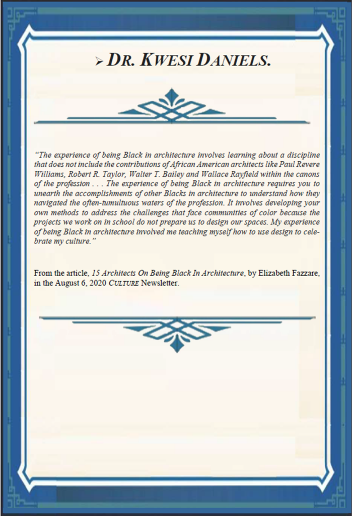(This chapter describes a possible source for Walter T. Bailey’s motivation and drive to become an architect. It also includes one of Dr. Daniels’ commentaries from the book.)
