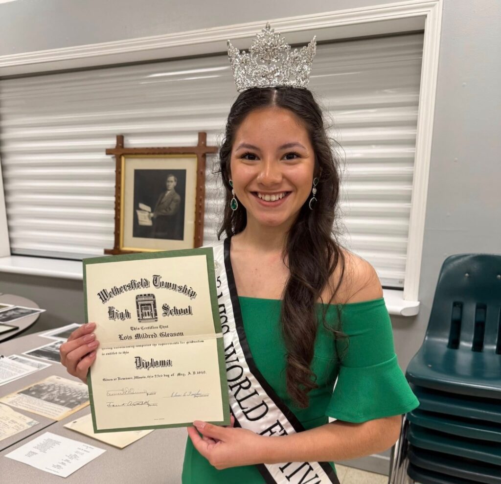 Eva Ceja, a 2025 WHS graduate recently crowned Miss World Festival Queen, also assisted and spoke to the alumni gathering about what receiving an education at Wethersfield meant to her. Ceja and classmate Leah Franklin each received renewable $1,000 scholarships presented at graduation in memory of