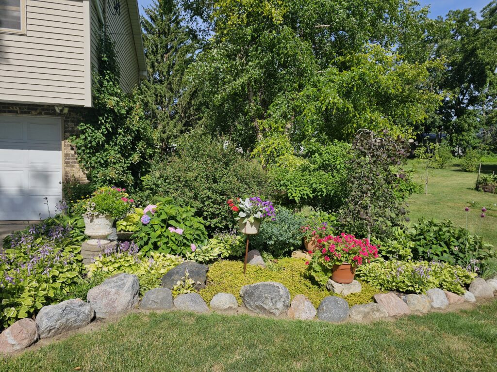 The mature landscaping around their home may look like it’s complete, but Sharon, who enjoys watching gardening shows, said that’s never the case.
