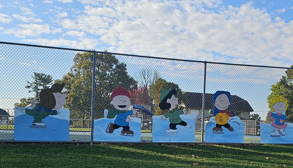 Several of the cutouts that will adorn the park are already up. The committee is taking advantage of the fall weather. [Photo by Susan DeVilder]
