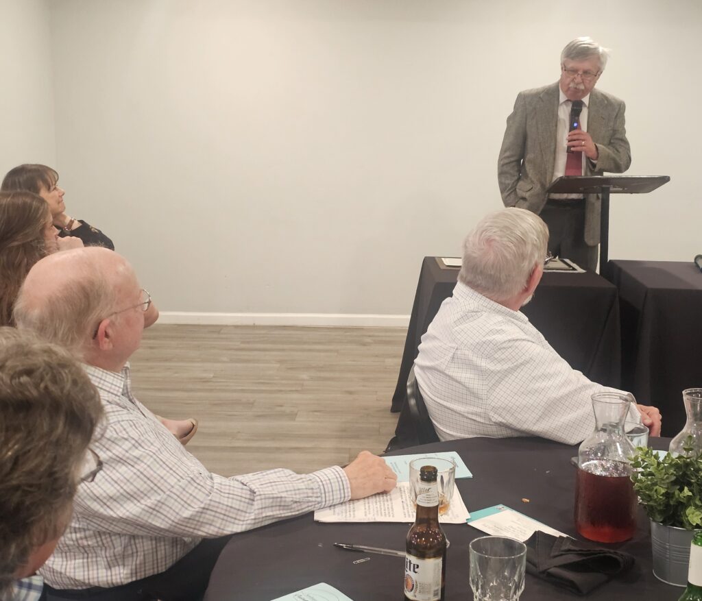 Speaking at the banquet at Midland Country Club, Clarke said his work at WKEI Radio in Kewanee beginning in 1966 sparked an interest in keeping the community informed about local happenings. And a keen interest in history led him to become one of the leading authorities on the history of Kewanee and Wethersfield.