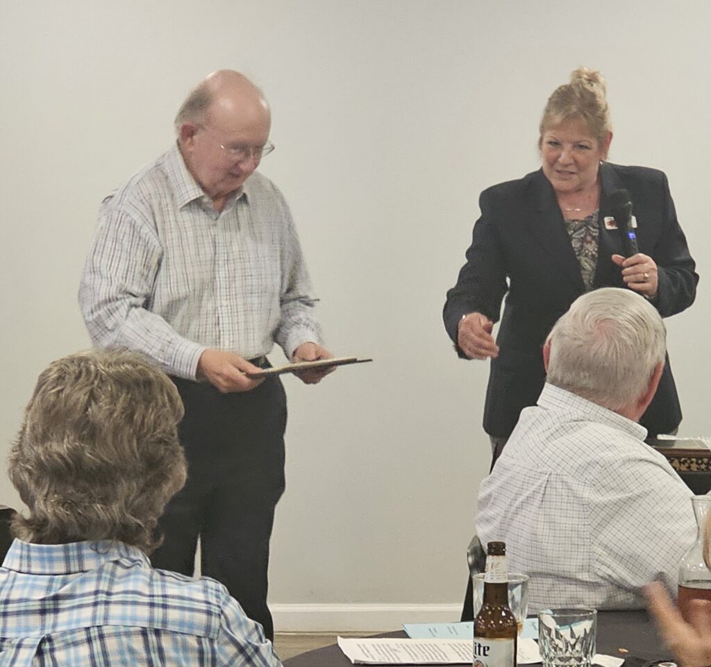 Dianne Packee, a friend of Clarke’s as well as the 2022 recipient of the Outstanding Citizen award, presented Clarke with a proclamation from State Sen. Neil Anderson and State Rep. Travis Weaver. She also read a letter from local historian Larry Lock citing Clarke’s interest in local history and saying he “admires Dave’s research and writing skills.”
