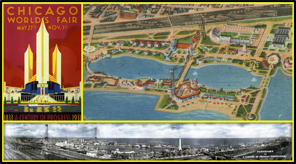 The 1933-1934 Century of Progress Exposition was intended to look to the future from its site on Northerly Island, an artificial peninsula of land on Lake Michigan. It became a showcase for modern living, consumerism and entertainment, driven by the need to stimulate spending during the Great Depression. There were nearly two dozen corporate pavilions touting the latest devices and things for home and car.