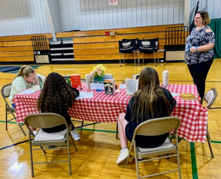 In the gym, students from grades fourth through sixth were able to participate in a “book tasting.” A book tasting is designed to help expose students to new and different genres of books to expand their love of reading.