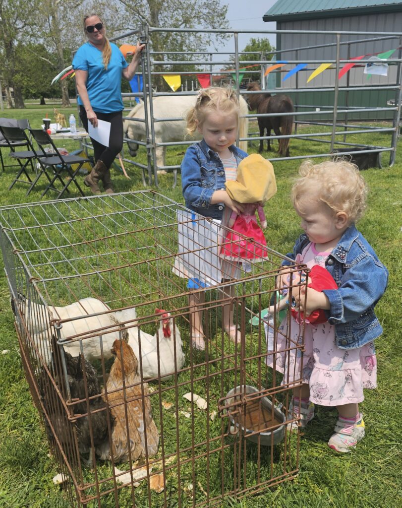 Tripp Reiker, a sixth grader, brought his show harness cow, Delilah. Rashid provided chickens and sheep were provided by Kevin Charlet.