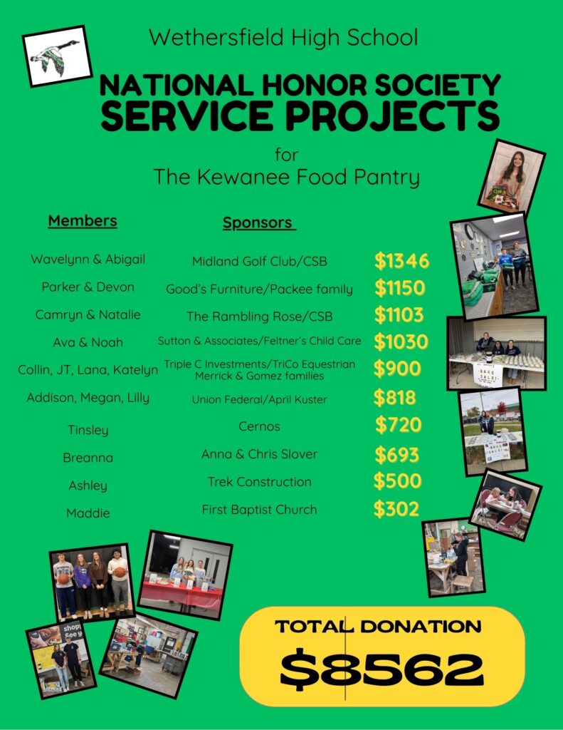 From the ten service projects, Wethersfield NHS members raised $8,562.