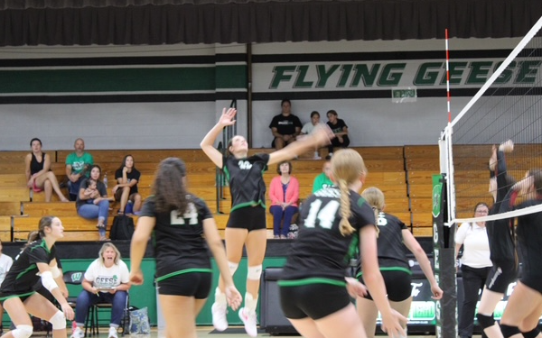 The Lady Geese had great talk on the court that helped them have strong passes on serve receive. Hitters Kyleigh Anderson and Jordan Nelson complete kills that helped the Geese gain a big lead.