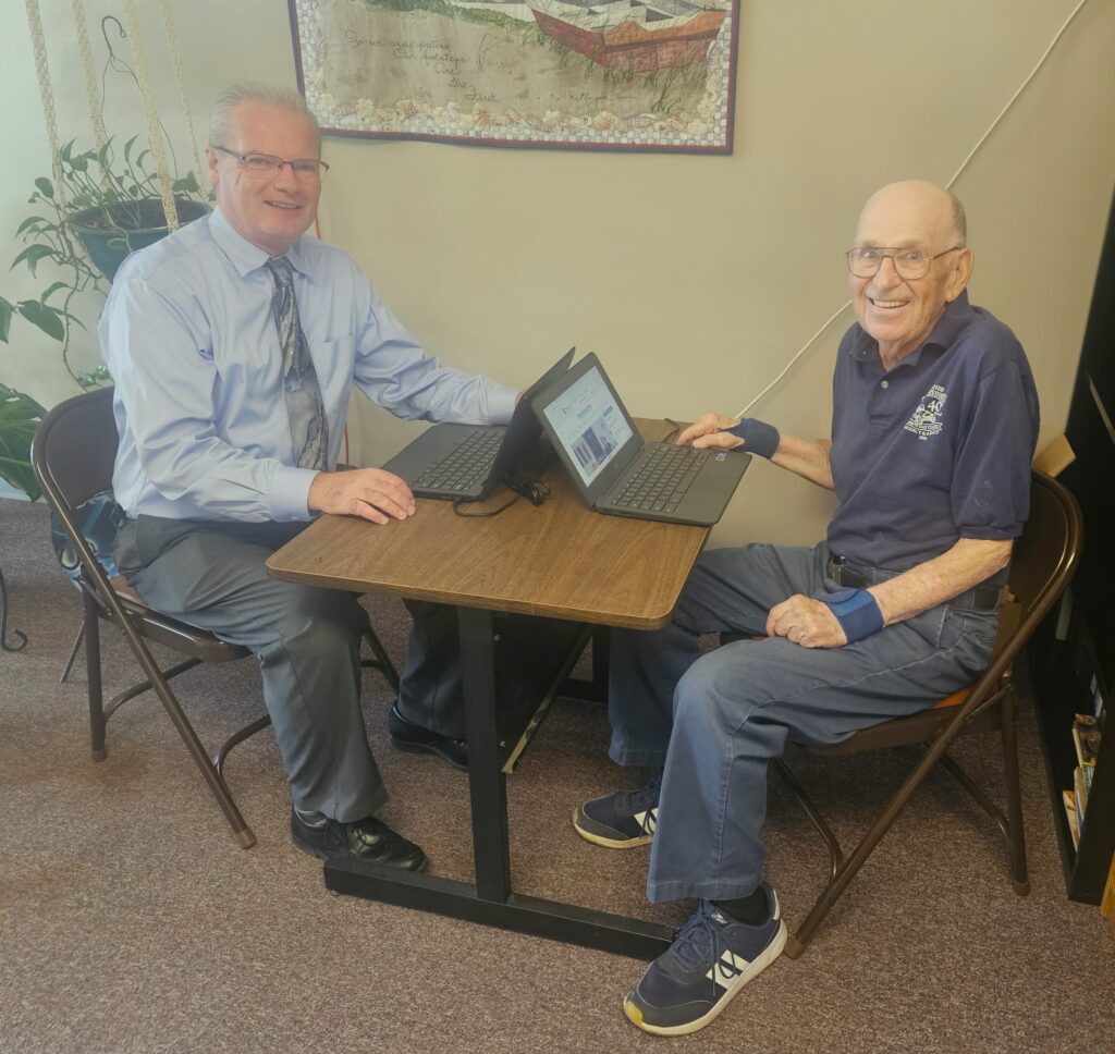 Maurice Yepsen, who visits the senior center every day for lunch and on Tuesday nights for dinner, was the first senior to use the computers to view the website. Perva said these extra computers were purchased prior to Covid, and the district was going to do away with them. Perva said older computers reach their end of life and need to be replaced, but new guidelines suggest that they actually function perfectly fine past their end-of-life date.
